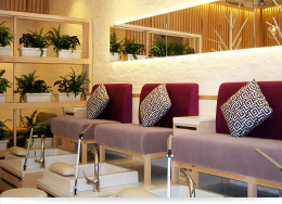 こだわりの家具や小物を集めた、大人の女性もときめく素敵空間で、上質なネイルサービスを。ゆったりくつろげるソファのフット席もお勧めです。