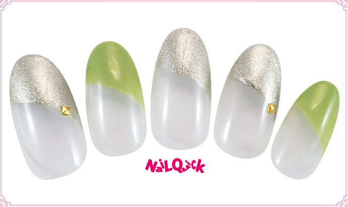 シルバーとグリーンのななめフレンチネイル|ネイルサロンならネイルクイック Nail Quick